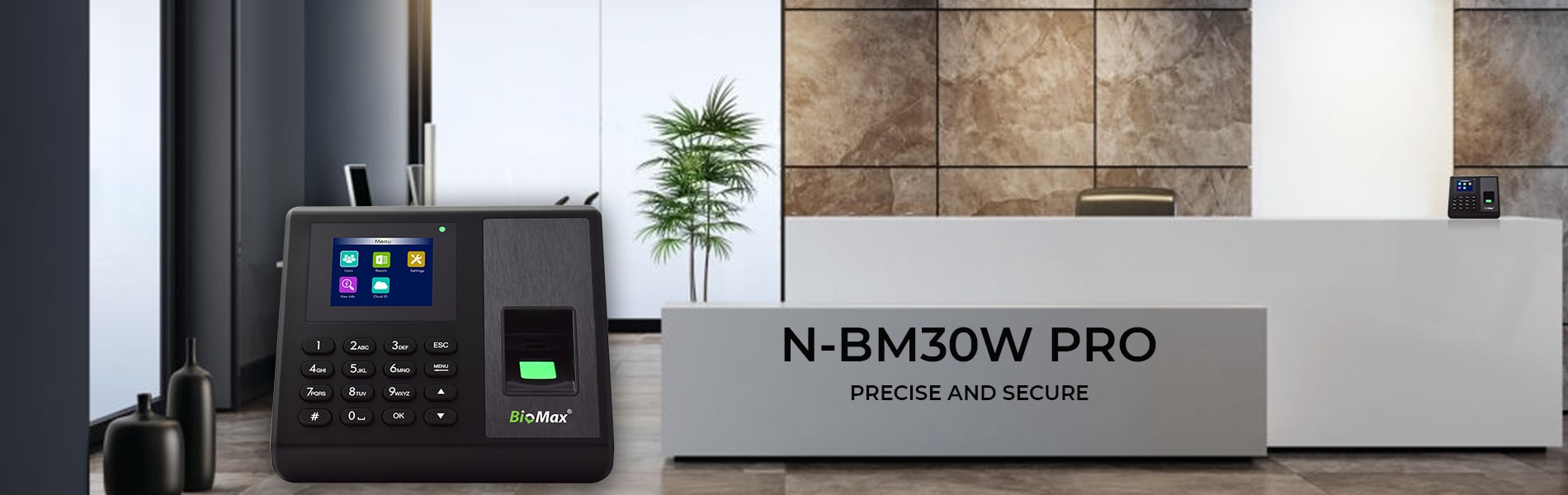 BIOMAX N-BM30W Pro Fingerprint Time Attendance with Access Control is a solution for comprehensive attendance management and access control. This advanced device combines fingerprint recognition technology with access control features to ensure accurate time tracking and secure access. With its user-friendly interface and robust design, it enhances workplace security and efficiency. Ideal for various industries, it offers a seamless integration of attendance tracking and access control in one powerful system.