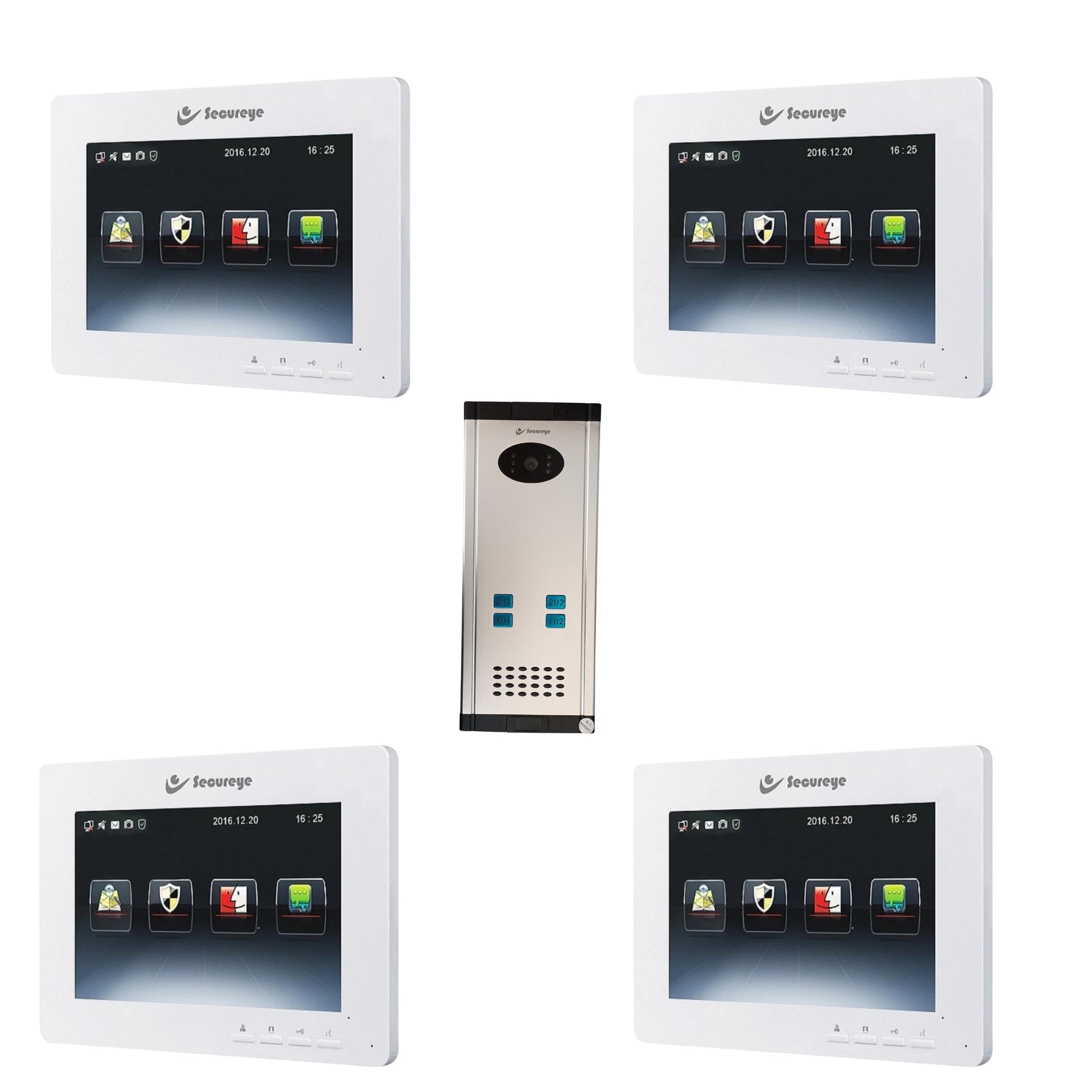Navkar Systems 4 pcs of Secureye S-VS9 7 Inch Colored Video Door Phone System with S-C40P – 4 Button Villa Outdoor Station with Night Vision & Vandal-Proof Design