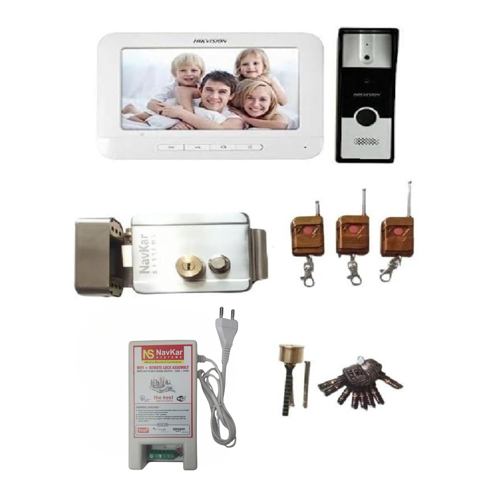 Combo-CN221 Electronic Door Lock+ WiFi Power Supply + 3 Remotes with Video Door Phone (VDP DS-KIS204 7-inch)