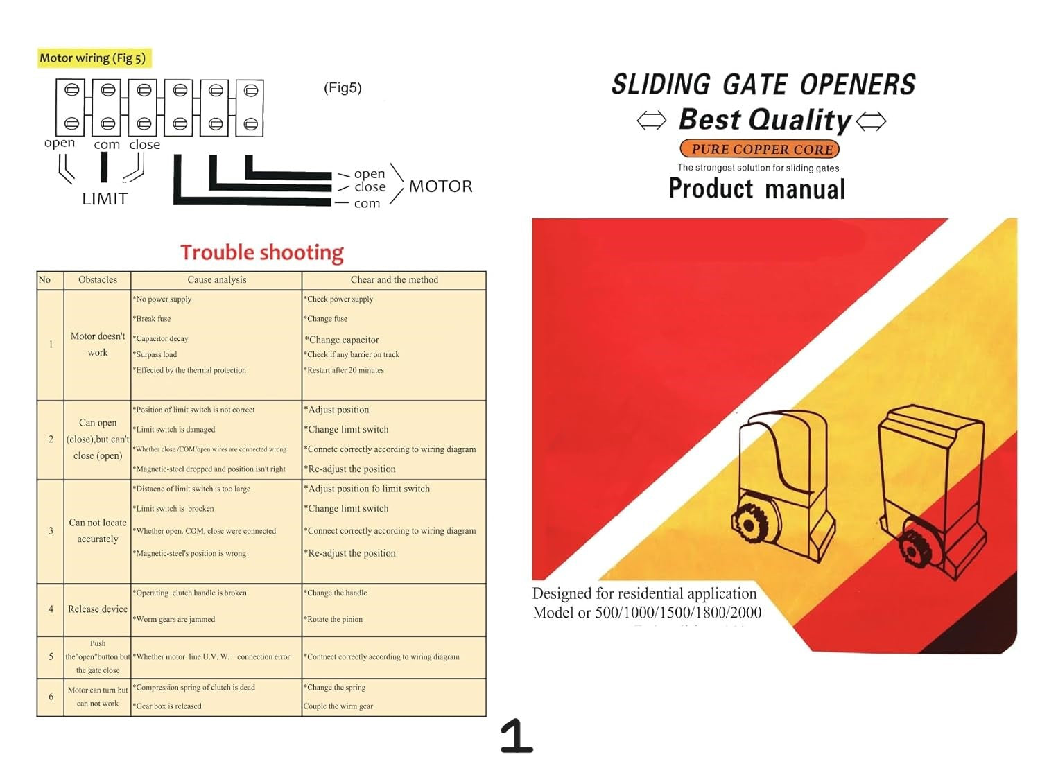 - In case of power failure, the gate can be opened and closed manually after release clutch