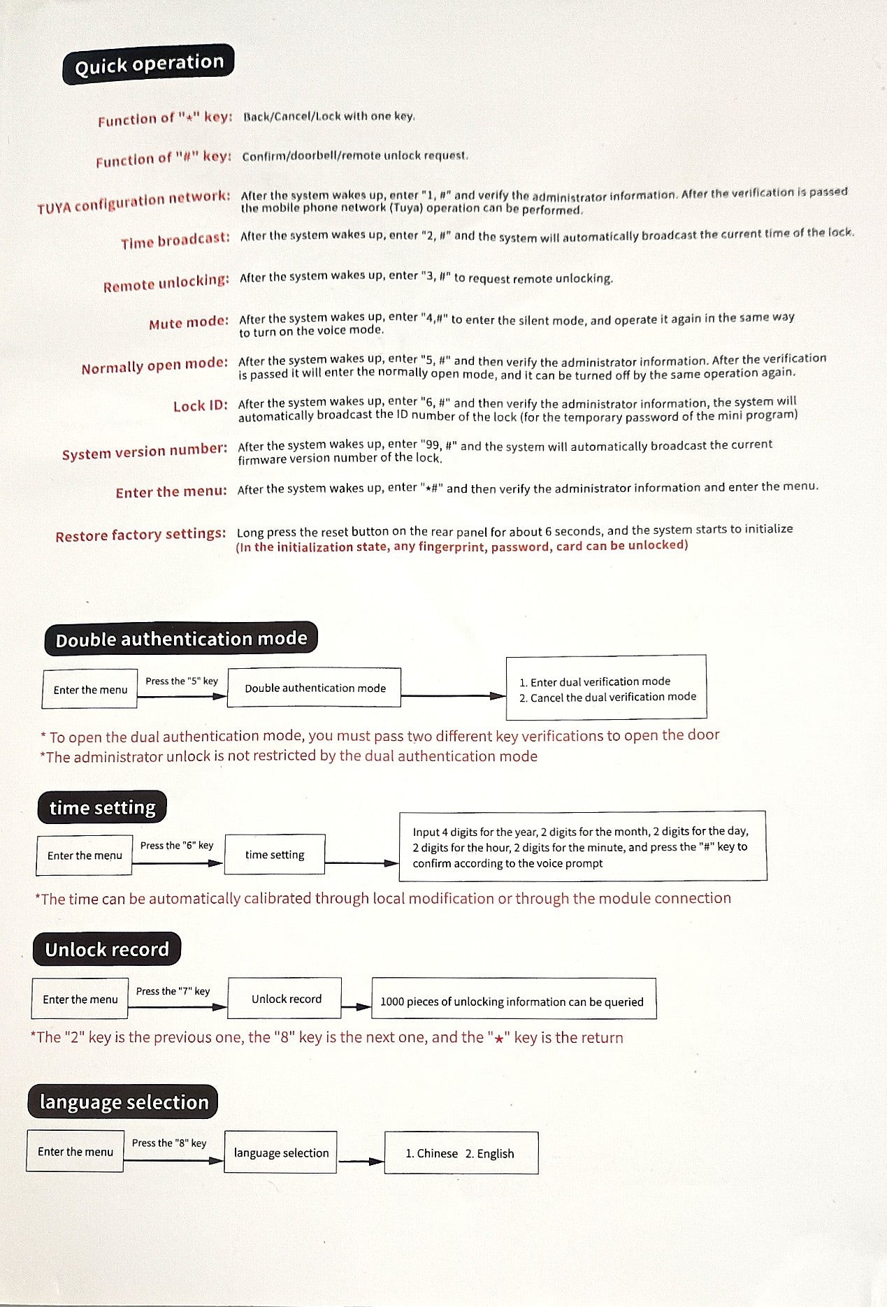 • Smart lock supports WIFI connection, use Tuya app to manage door lock