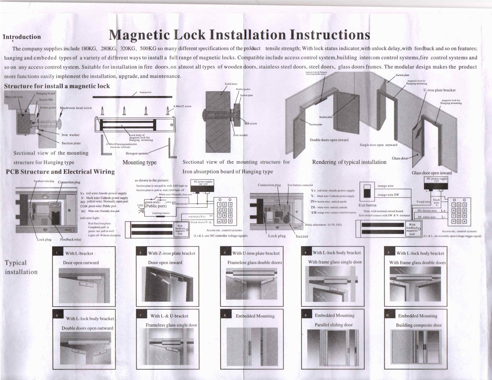 - Installation Quick Guide - 1st install U Bracket with armature plate on swinging glass door, 2nd standard installation of Em Lock on Door Frame (Metal,Alluminium or wooden).