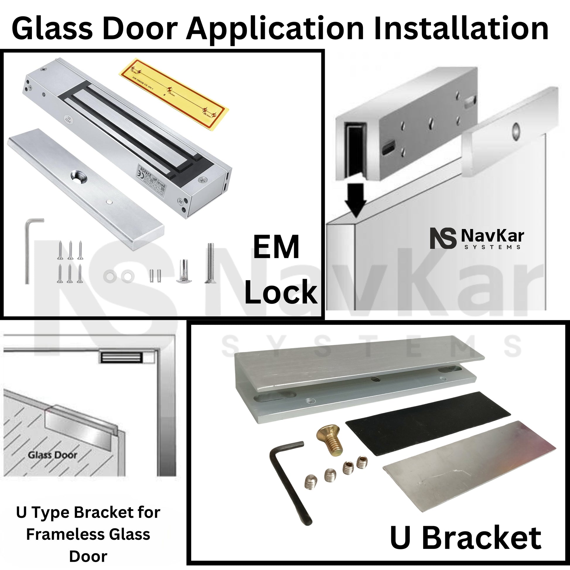 - Specifically designed for Glass doors, U bracket with EM magnetic lock offers secure and seamless installation for in/out swing glass doors. This solution is ideal for glass doors with thickness ranging from 10 to 14mm (0.39 to 0.55 inches).