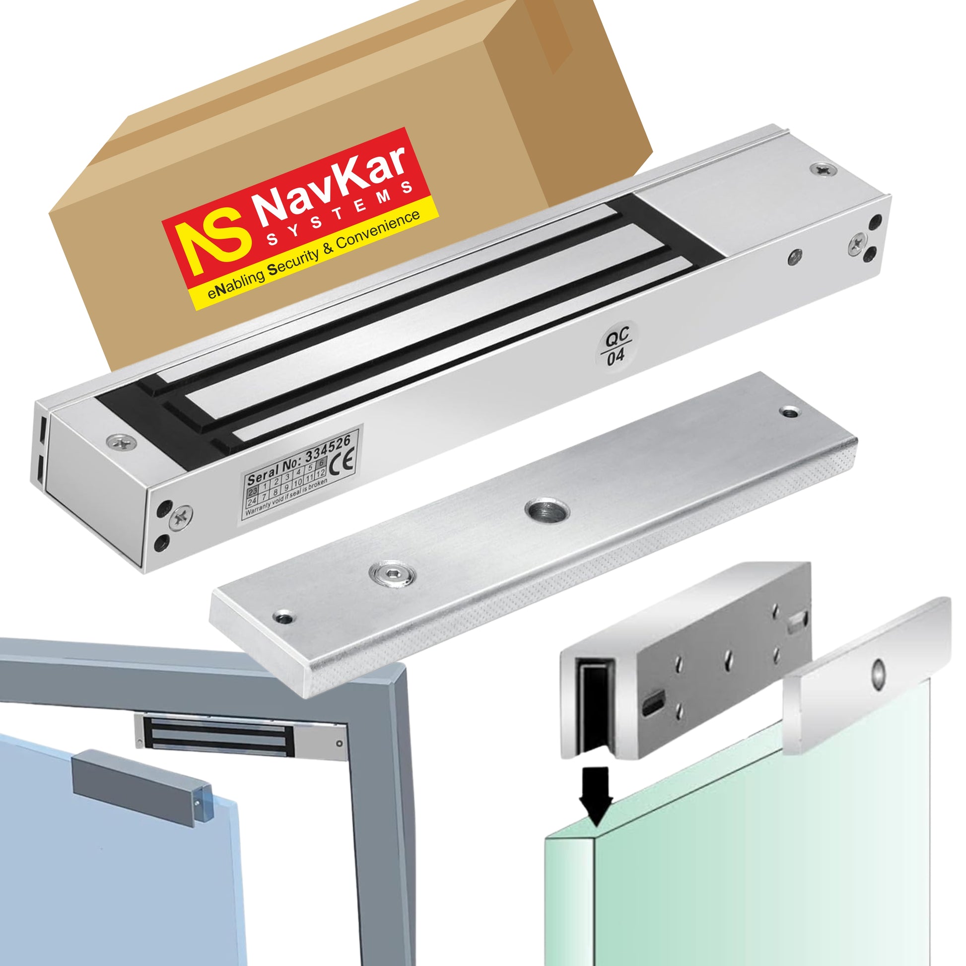 With U bracket it's a perfect solution for Glass Doors (in/out swing) electromagnetic lock/ EM Lock Single Leaf(600lbs) 2 Wire is a high-end lock that comes with an aluminium alloy and has a strong suction that can hold the door in place, with an efficient heat dissipation that keeps the lock from overheating Suitable for 10~14mm/0.39~0.55in glass door. It is a high-quality lock that has a variety of safety features. Anodized clear aluminum finish No residual magnetism Easy access wiring cavity. If you're looking for a top quality magnetic lock for your Glass door navkar Systems is the perfect choice. It is both strong and durable, making it ideal for a variety of doors. Plus, it's easy to install and comes with all the necessary hardware. So don't wait any longer, order your magnetic lock today!. This EM lock is made of high-strength steel and features a 600-pound holding force, making it ideal for protecting your property against intruders. The electro-magnetic design of this lock ensures that it will hold fast in the event of a power outage, making it a reliable security option for your home or business. This lock is easy to install and comes with all the necessary hardware for a quick and easy installation.12V DC operation Dimension: 250*48*27mm Armature Plate: 180Lx38Wx11H(mm) Voltage: 12/24/48VDC+10% Current: 0.48A/0.24A Operating Temp: -20ºC ~ 60°C Working Mode: Power off to open(NC) Finishes for Shell: Anodized aluminum Finishes for Magnetic:Zinc Finishes for Armature