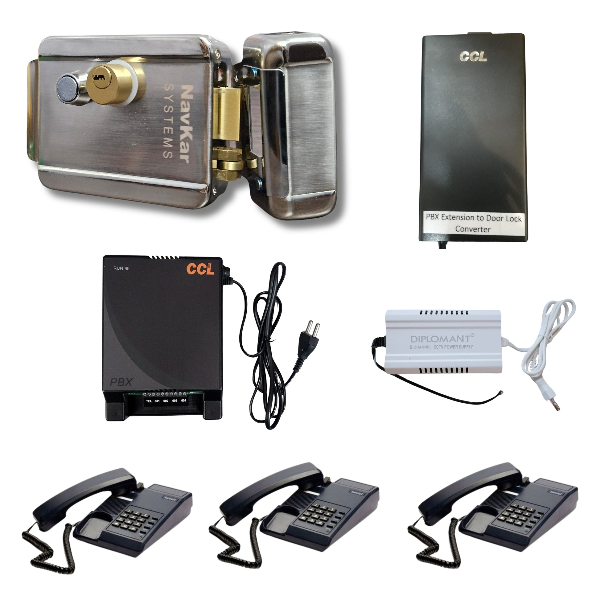 Combo-CN217 Electronic Lock with CCL Door Lock Convertor working on 4 Line Intercom with Beetel C11 Phones