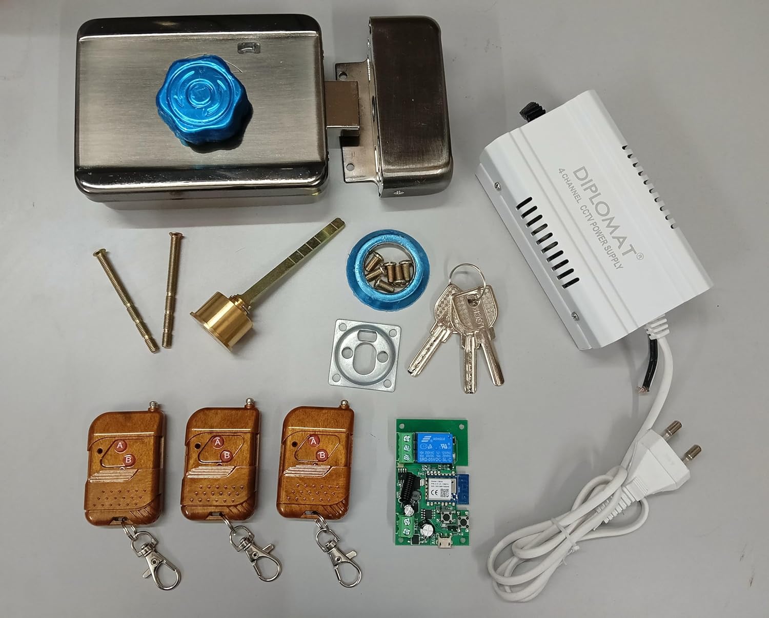 Combo-CN91 Motorised Electric Door Lock for Wooden & Metal Doors with 3 Keys with WiFi Controller with 3 remotes and 12V 3A Power Supply | Stainless Steel | Motorised Technology