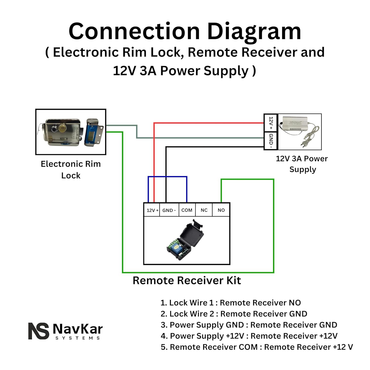 - Electronic Lock with 12V 2 Amp Adapter, Remote Receiver & 3 Remotes