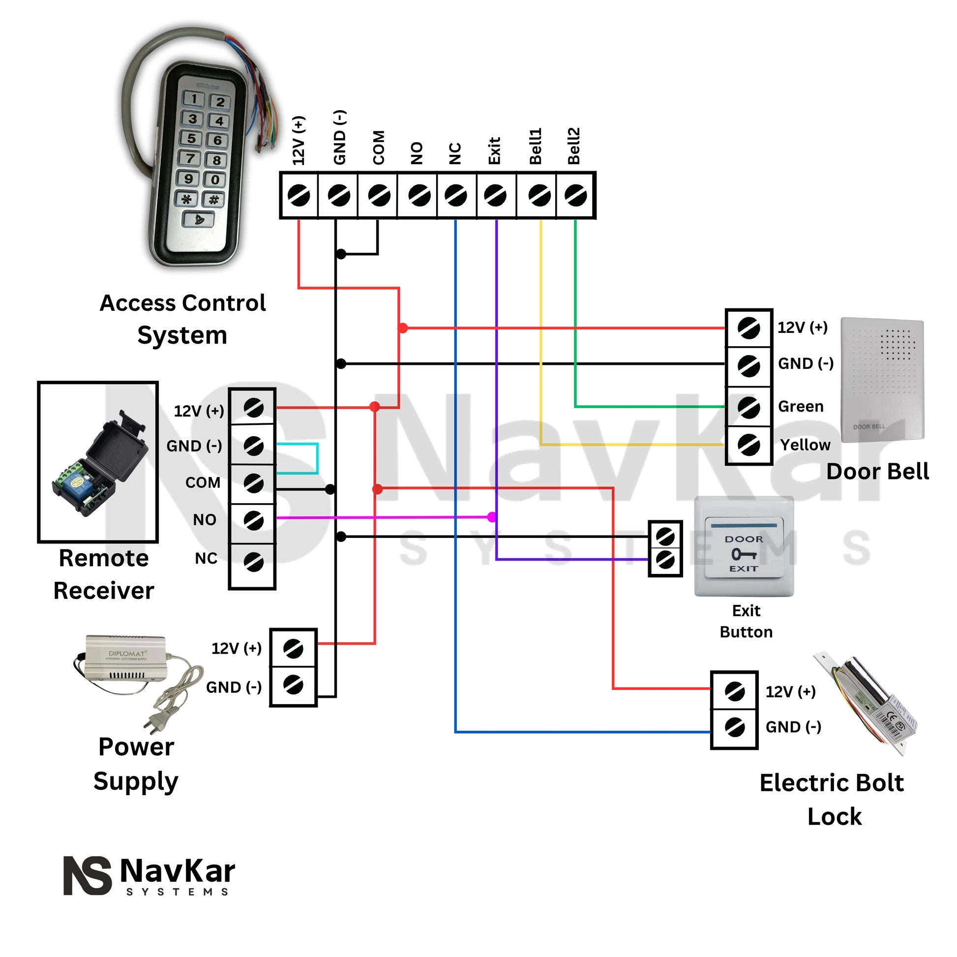 - 12v Door Bell, 12v Supply, Plastic Exit Button, Card, Pin
